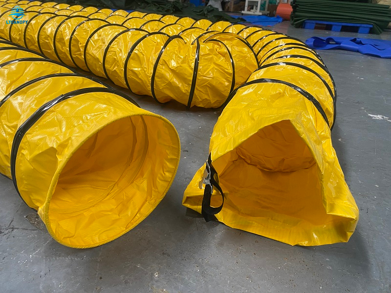 El cuerpo liviano y el conducto de PVC se pueden plegar y desplegar fácilmente, son fáciles de transportar y se conectan al labio del ventilador lateral de extracción.